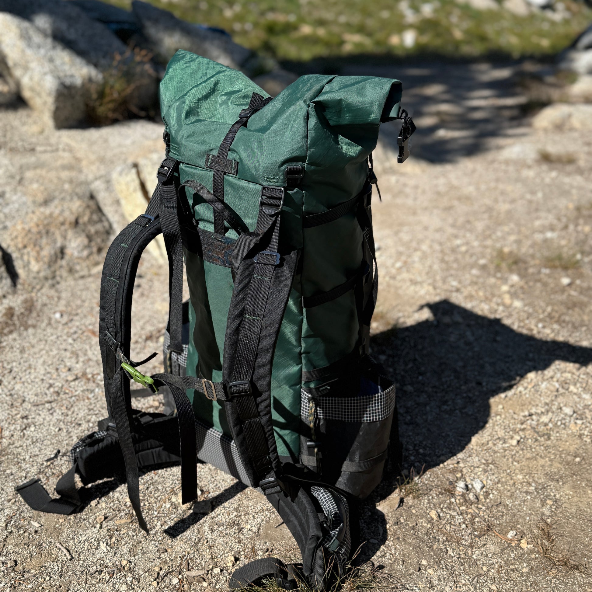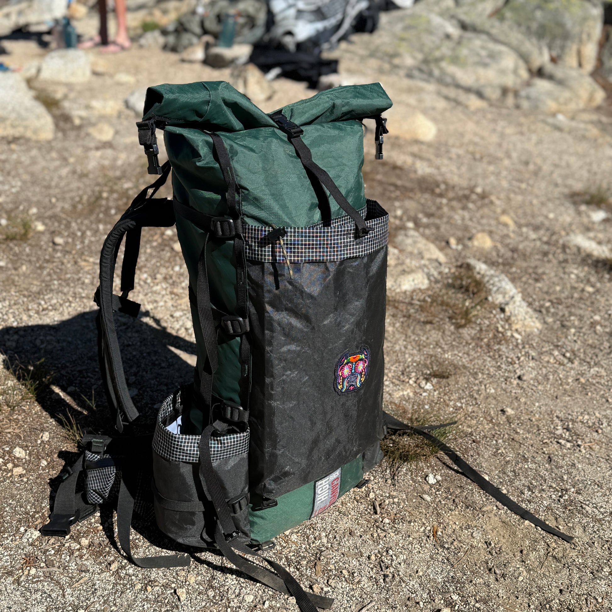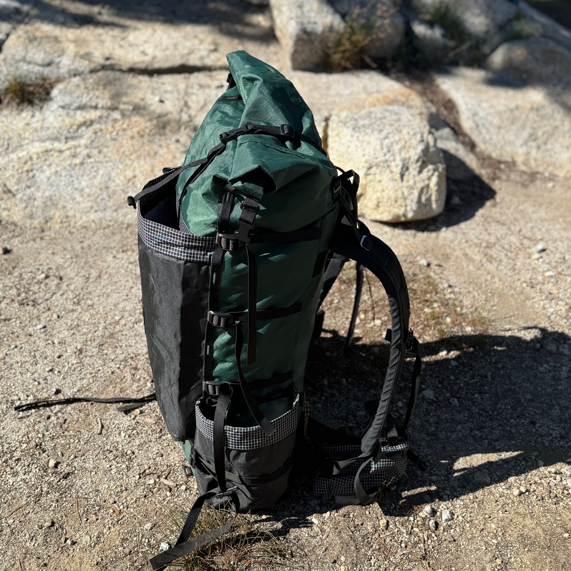 The Col 211 is a bag intended for remote off trail travel over cols, basins and rugged canyons. It's also a fine bag for long trails like the JMT where resupplies are infrequent and bear canisters are mandated. The Col 211 is simple, light and rugged. It features oversized bottle holders with cinch top closure and compressions straps that have enough room for a Nalgene and whatever else you want to stuff in! These are bottle holders that you can actually reach back and pull a bottle out! The front pocket features a cinch closure and drain holes. This is a big deep pocket that allows a broad range of uses from stashing a wet tent, to throwing all the items you want fast access to while on the trail. Below the front pocket are attachment points that allow the user to quickly add 3/4 buckle compression straps to secure things like sleeping pads and ice axes. Vertical daisy chains offer user versatility for attaching ice axes, fly rods, trekking poles and many other items. Shoulder straps and hip belts are crafted with genuine English Evazote foam in 1/2 and 3/4 inch thickness. Twin 7075-t6 aluminum stays support the bag firmly on your hips. The Col 211 can be made to the volume of your choosing and the front pocket can be sewn to your desired depths. Fabric choices for this bag are restricted to Ultra Weave, Ultra Grid and Cordura to ensure that it can take the abuse of off trail travel. We recommend that this bag be constructed with a 41 inch circumference to allow for horizontal storage of bear canisters. We can discuss bag volume in terms of intended use at time of order.