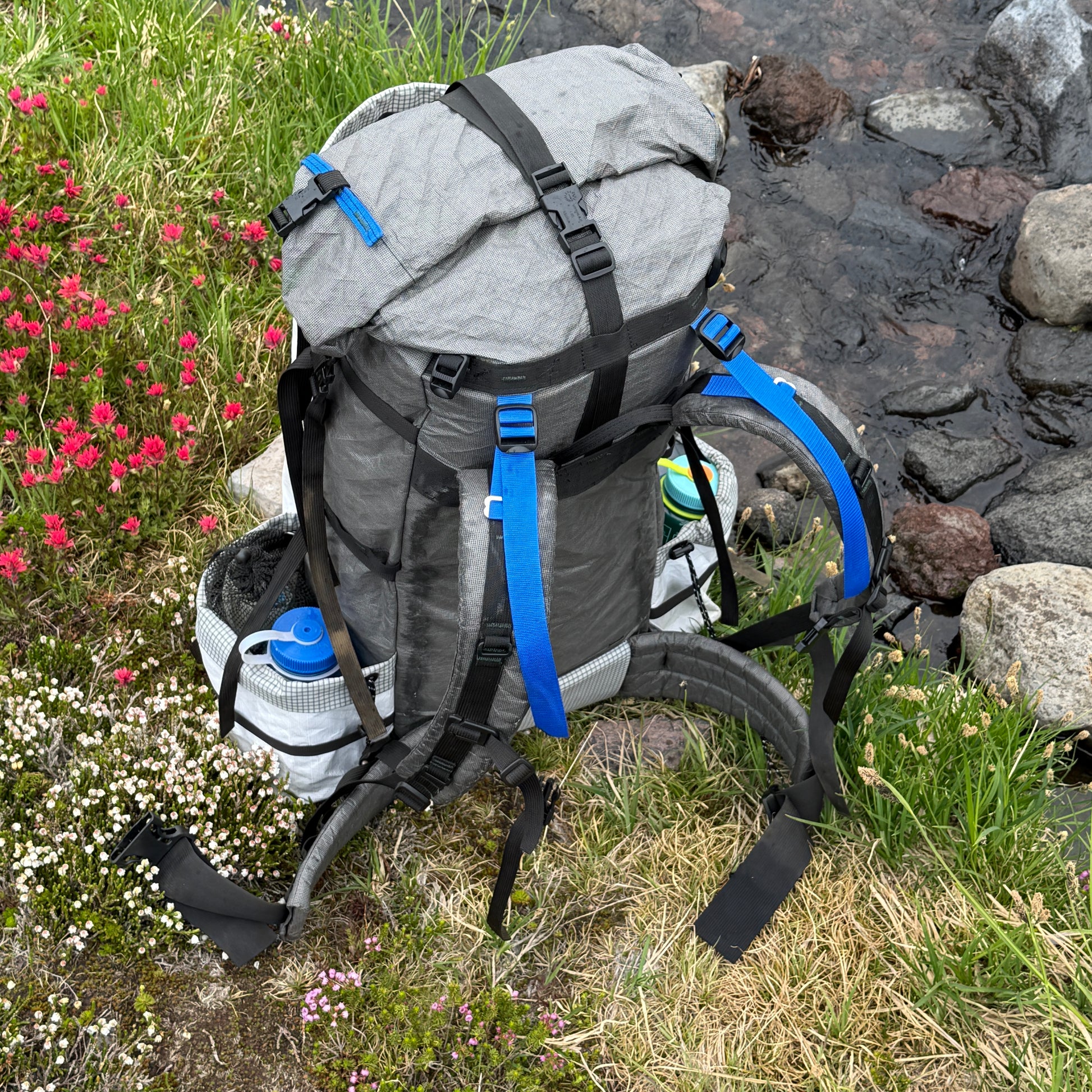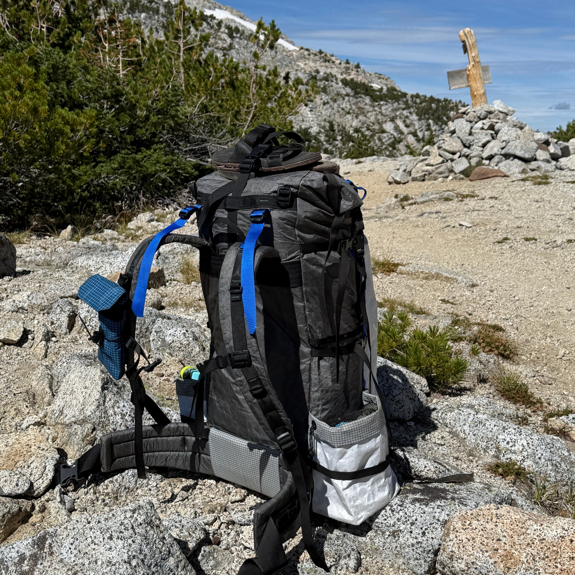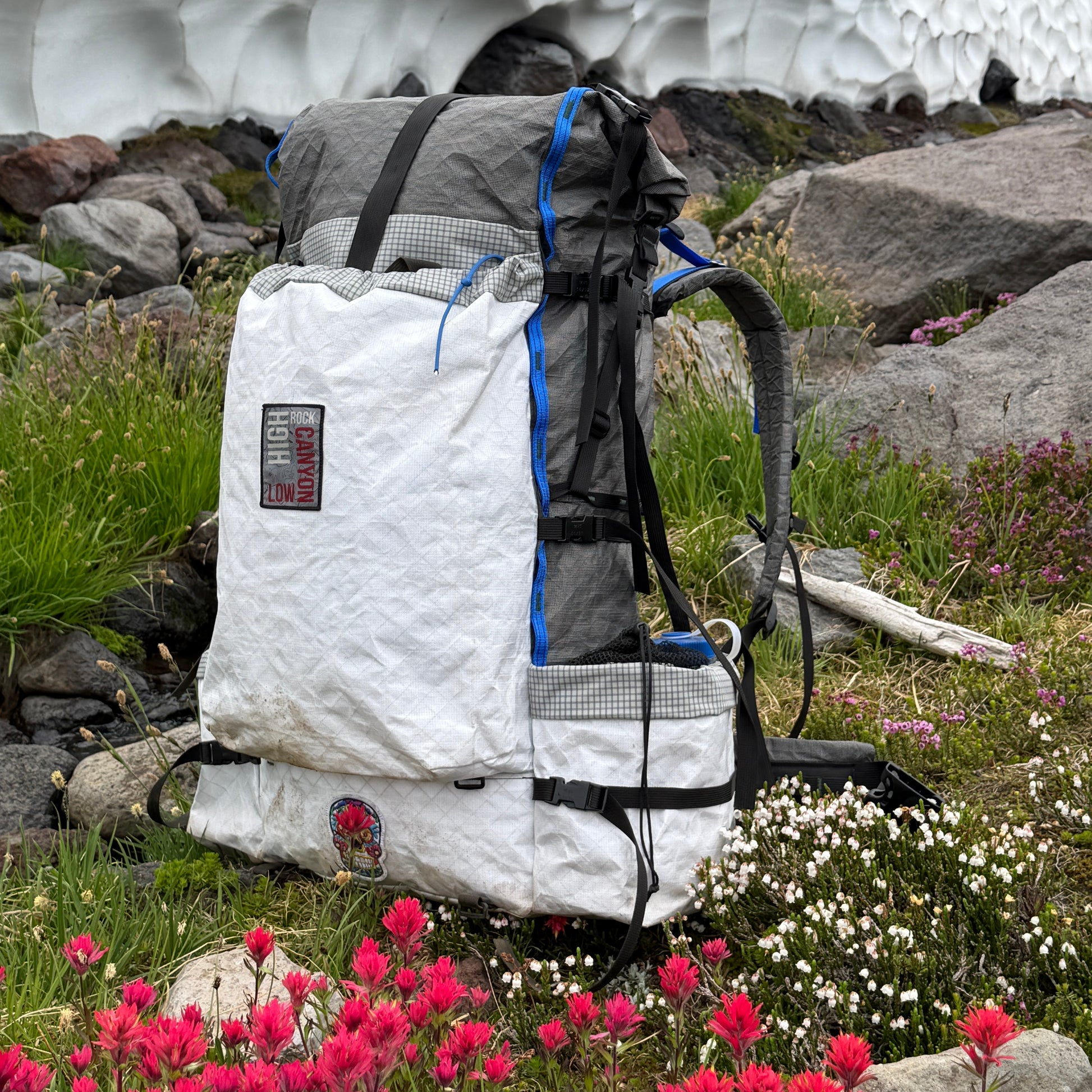 The Col 211 is a bag intended for remote off trail travel over cols, basins and rugged canyons. It's also a fine bag for long trails like the JMT where resupplies are infrequent and bear canisters are mandated. The Col 211 is simple, light and rugged. It features oversized bottle holders with cinch top closure and compressions straps that have enough room for a Nalgene and whatever else you want to stuff in! These are bottle holders that you can actually reach back and pull a bottle out! The front pocket features a cinch closure and drain holes. This is a big deep pocket that allows a broad range of uses from stashing a wet tent, to throwing all the items you want fast access to while on the trail. Below the front pocket are attachment points that allow the user to quickly add 3/4 buckle compression straps to secure things like sleeping pads and ice axes. Vertical daisy chains offer user versatility for attaching ice axes, fly rods, trekking poles and many other items. Shoulder straps and hip belts are crafted with genuine English Evazote foam in 1/2 and 3/4 inch thickness. Twin 7075-t6 aluminum stays support the bag firmly on your hips. The Col 211 can be made to the volume of your choosing and the front pocket can be sewn to your desired depths. Fabric choices for this bag are restricted to Ultra Weave, Ultra Grid and Cordura to ensure that it can take the abuse of off trail travel. We recommend that this bag be constructed with a 41 inch circumference to allow for horizontal storage of bear canisters. We can discuss bag volume in terms of intended use at time of order.