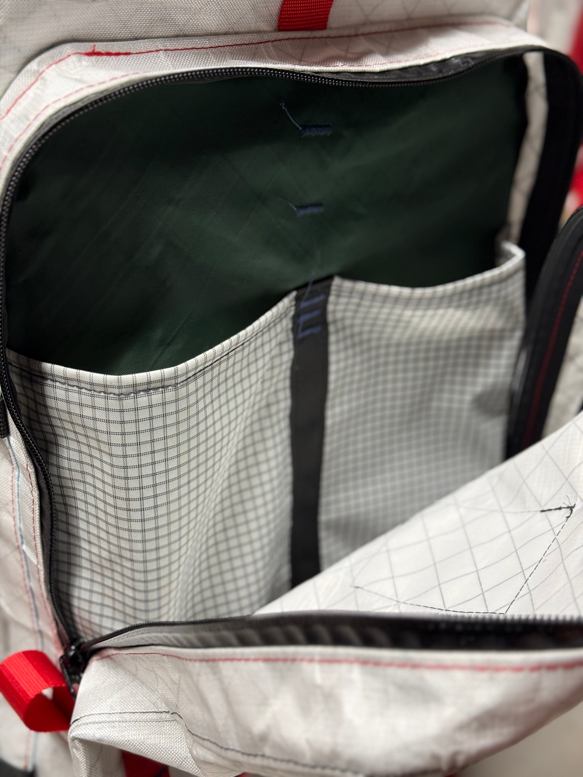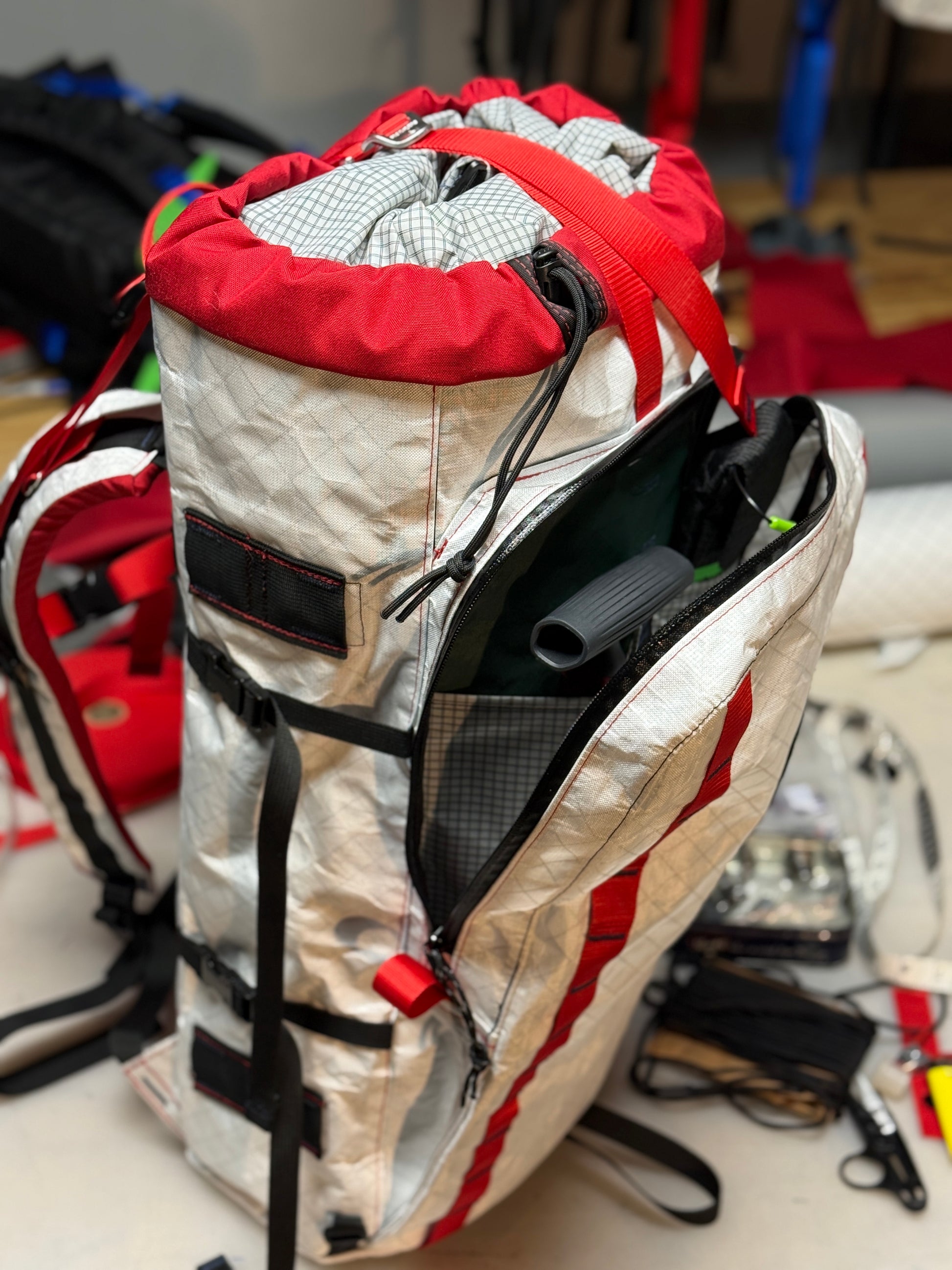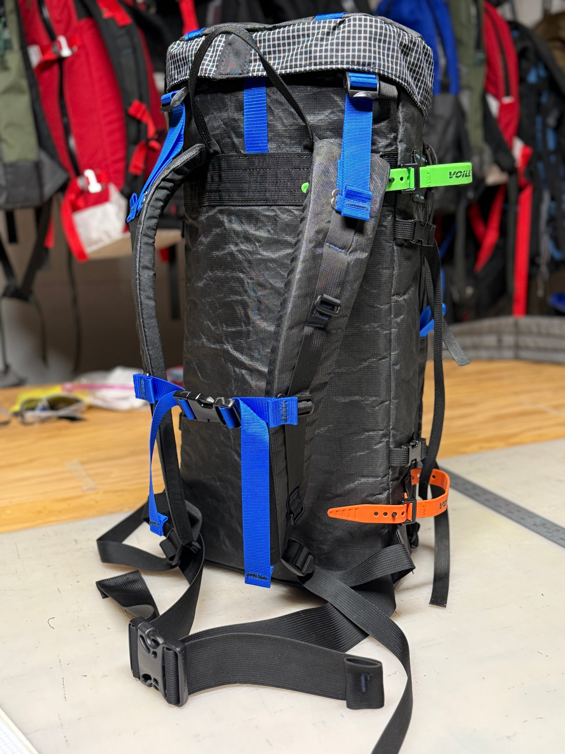 Tall, narrow profile (22" height) efficiently carries technical gear